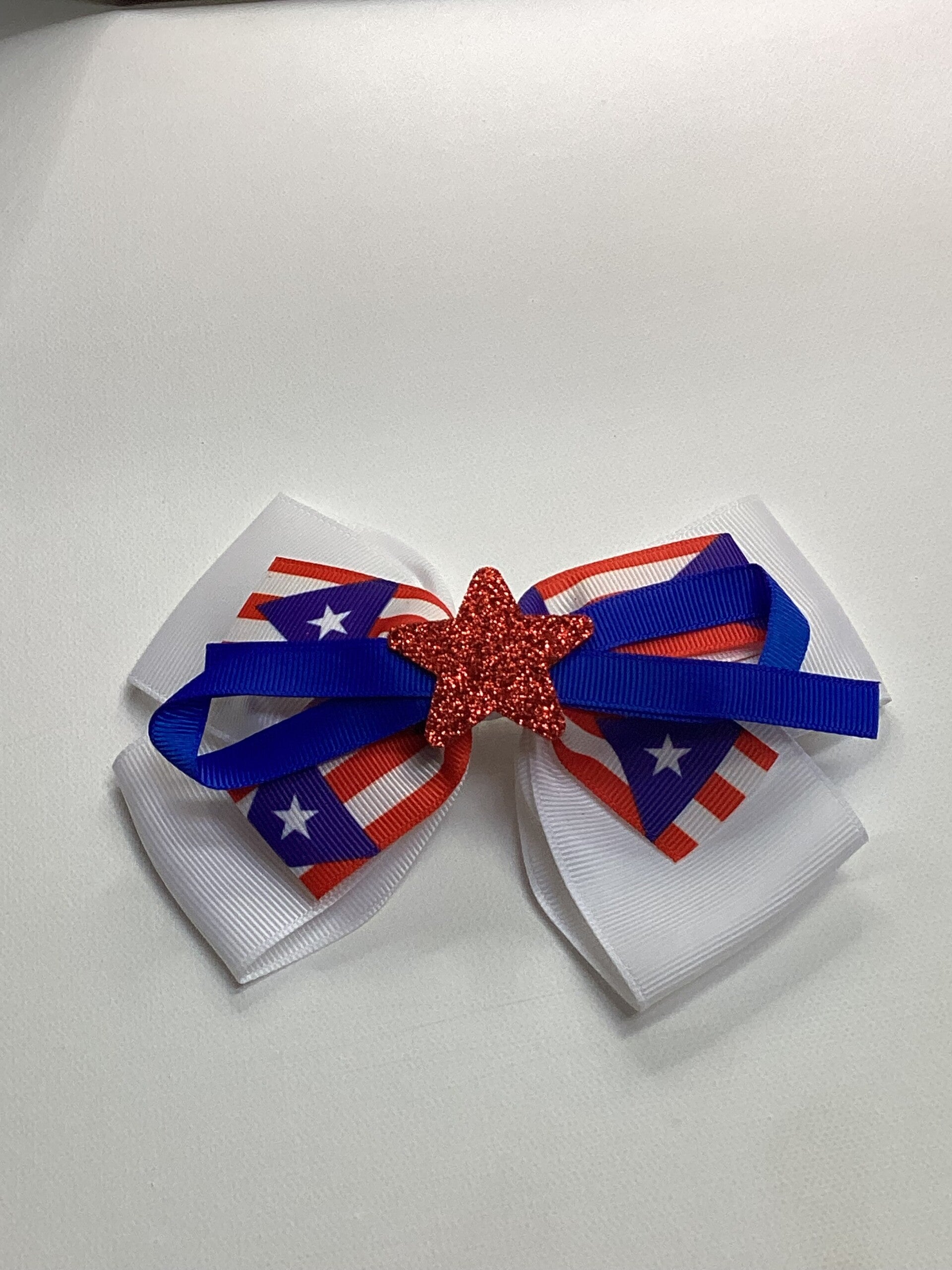White hair bow with PR flag